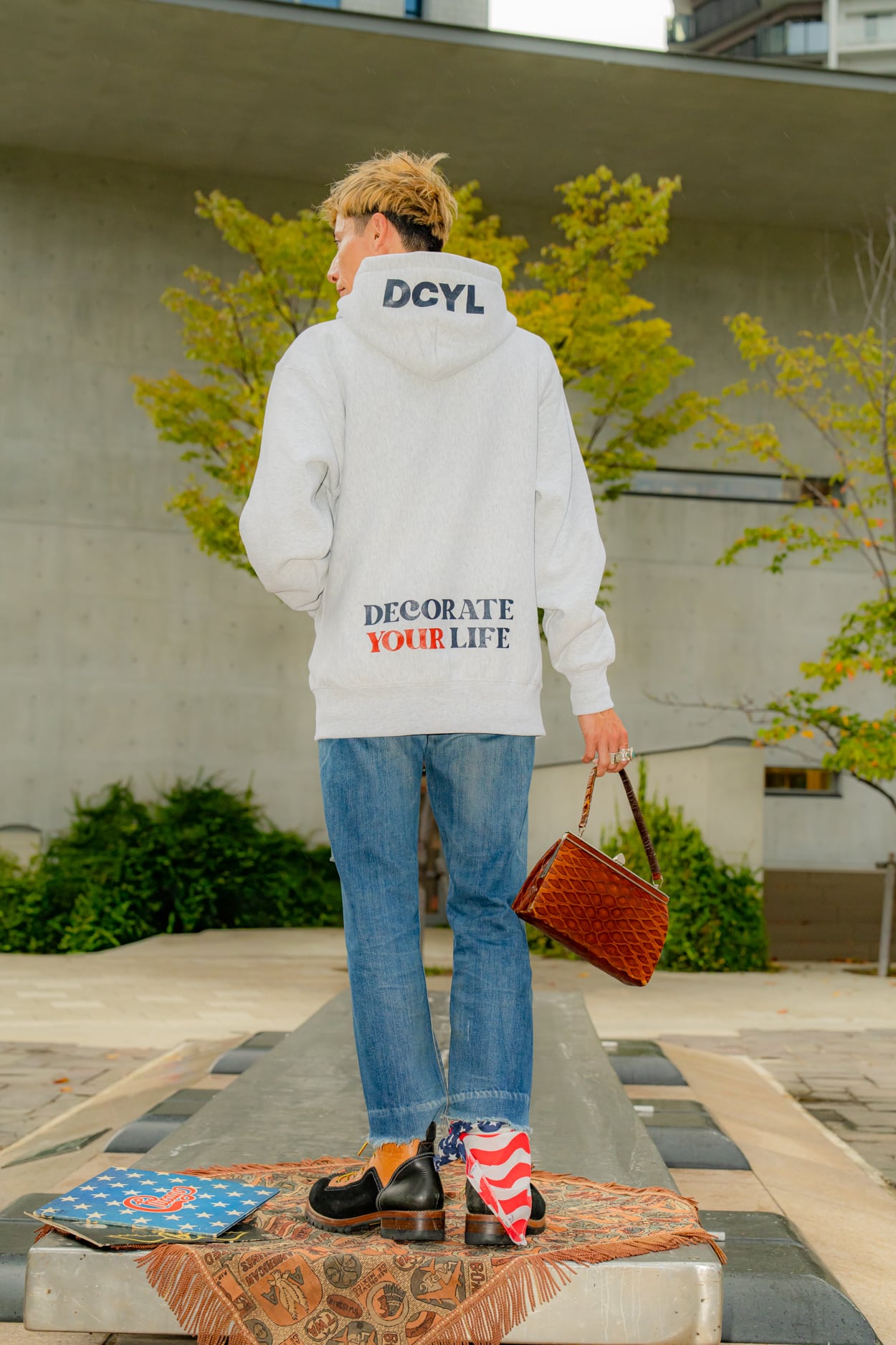 フードには「余計なことで悩まないで」「もっとシンプルに生きよう」という想いを込めたメッセージ「DCYL」“Don’t Complicate Your Life” をデザイン。