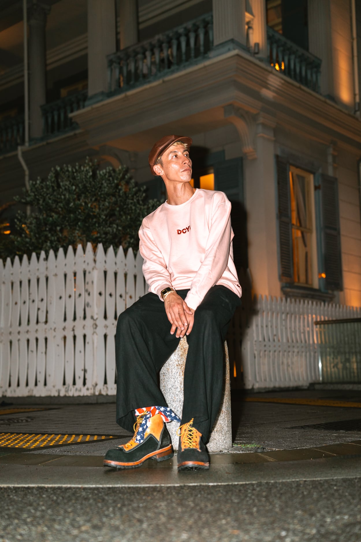 「余計なことで悩まないで」「もっとシンプルに生きよう」というメッセージを落とし込んだ「DCYL」の刺繍ロゴが胸元で映える一枚。