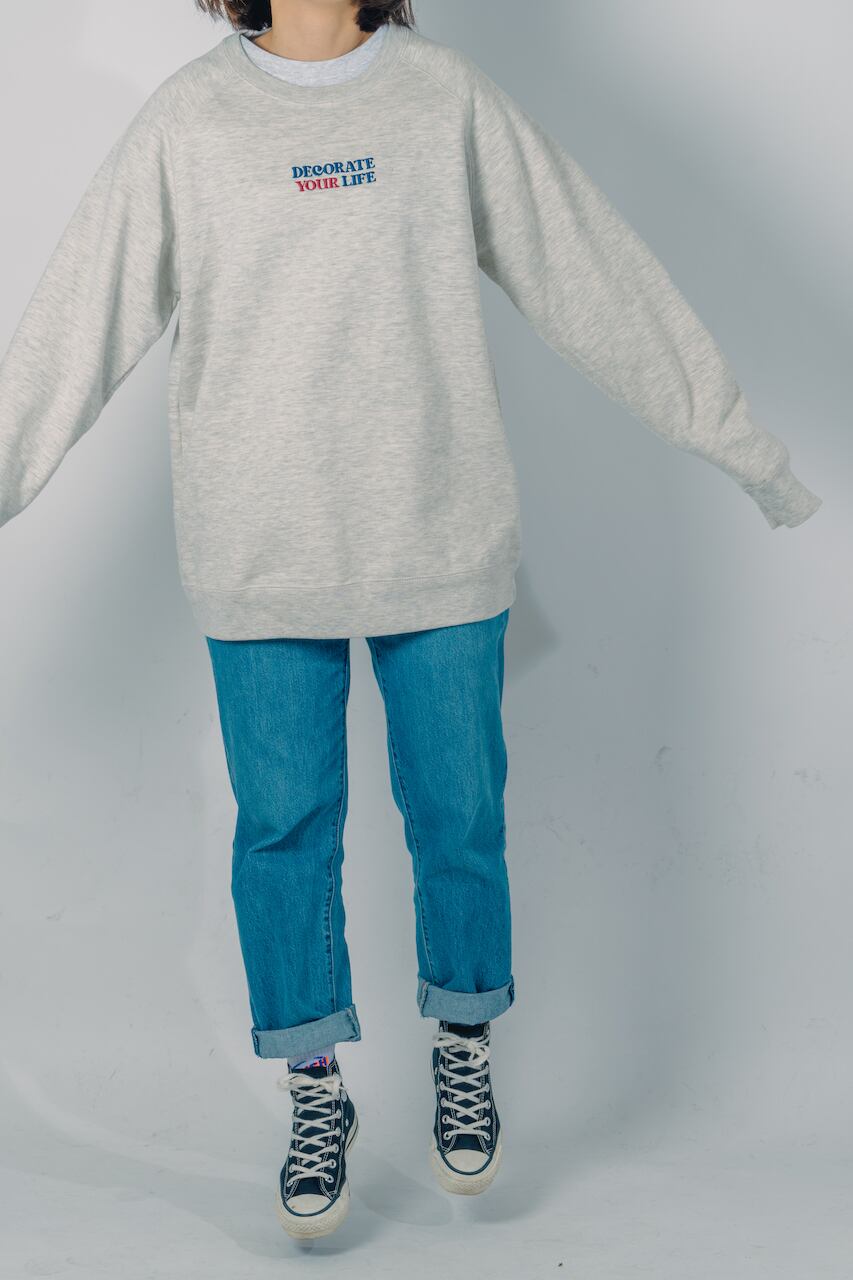 ベーシックロゴが胸にドドンと刺繍されたラグランクルーネック。