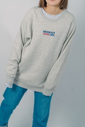 袖リブにはDECORATE YOUR LIFEのミッションである「あなたをハッピーにする」というメッセージを落とし込んだ「Happy?」のタグがあしらわれています。
