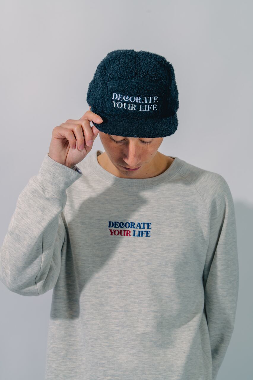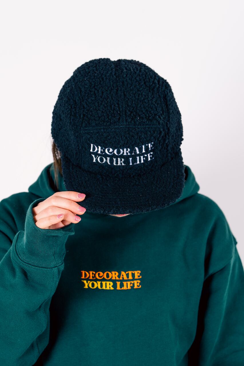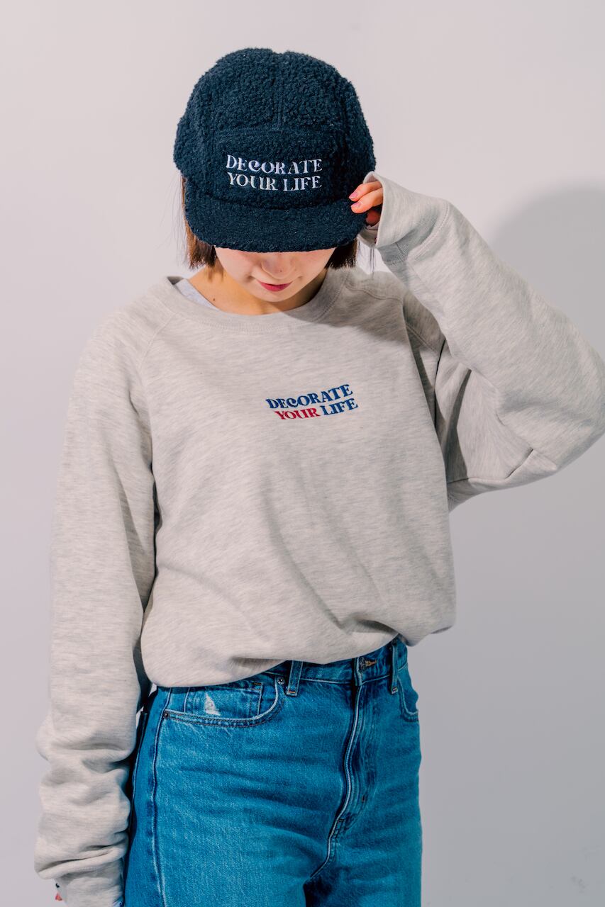 フロントにDECORATE YOUR LIFE のロゴが刺繍されたボアキャップ。
