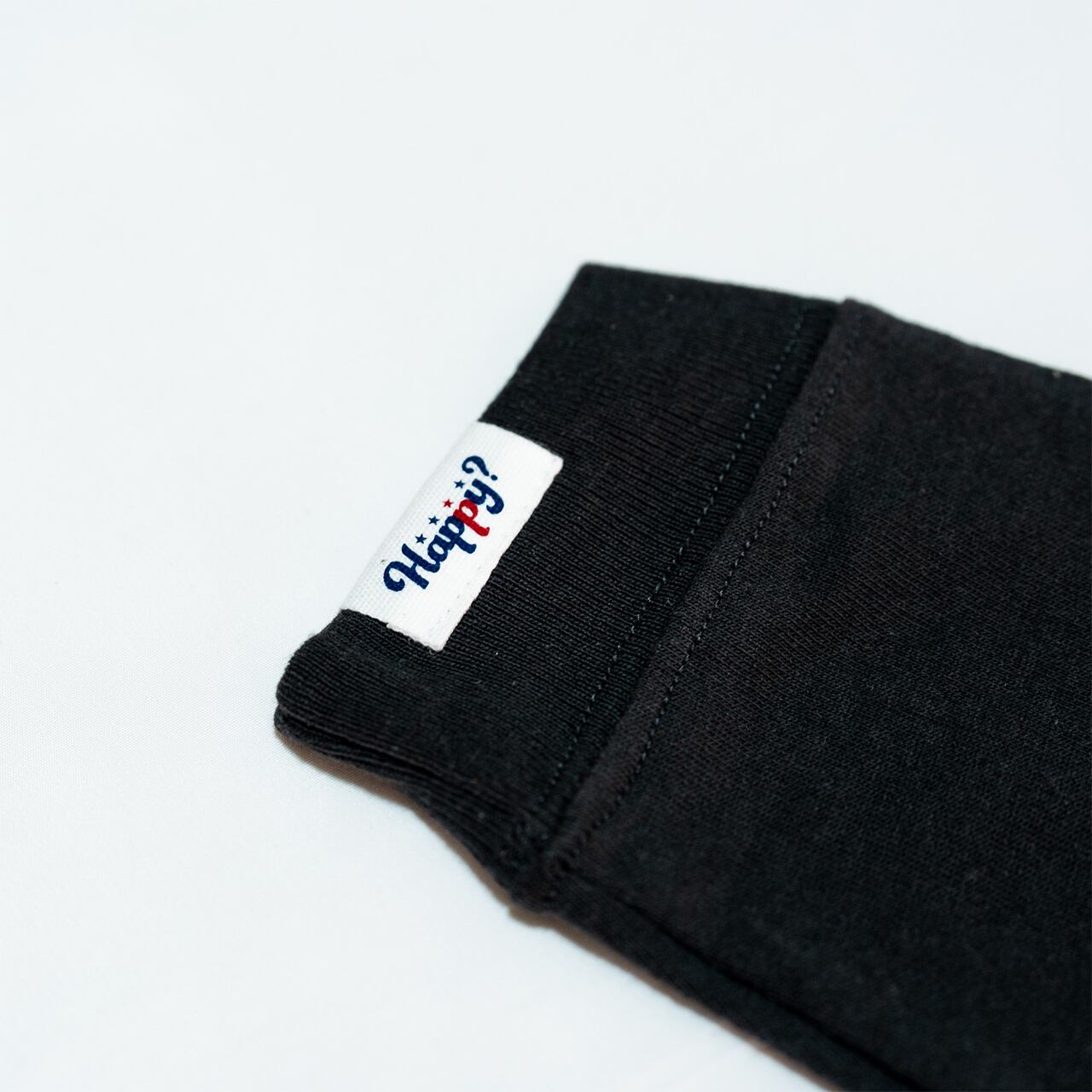 右袖にはDECORATE YOUR LIFEのミッションである「あなたをハッピーにする」というメッセージを落とし込んだ「Happy?」のタグがあしらわれています。