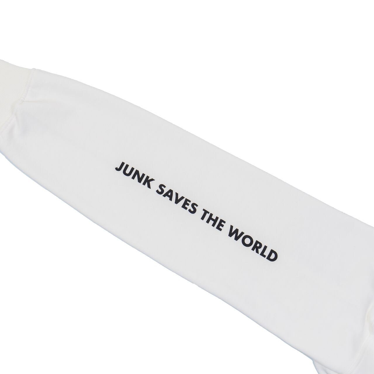 「ジャンクフード」をこれでもかと散りばめたカラフルなイラストが印象的な1枚。スリーブには”JUNK SAVES THE WORLD”の文字があしらわれています。