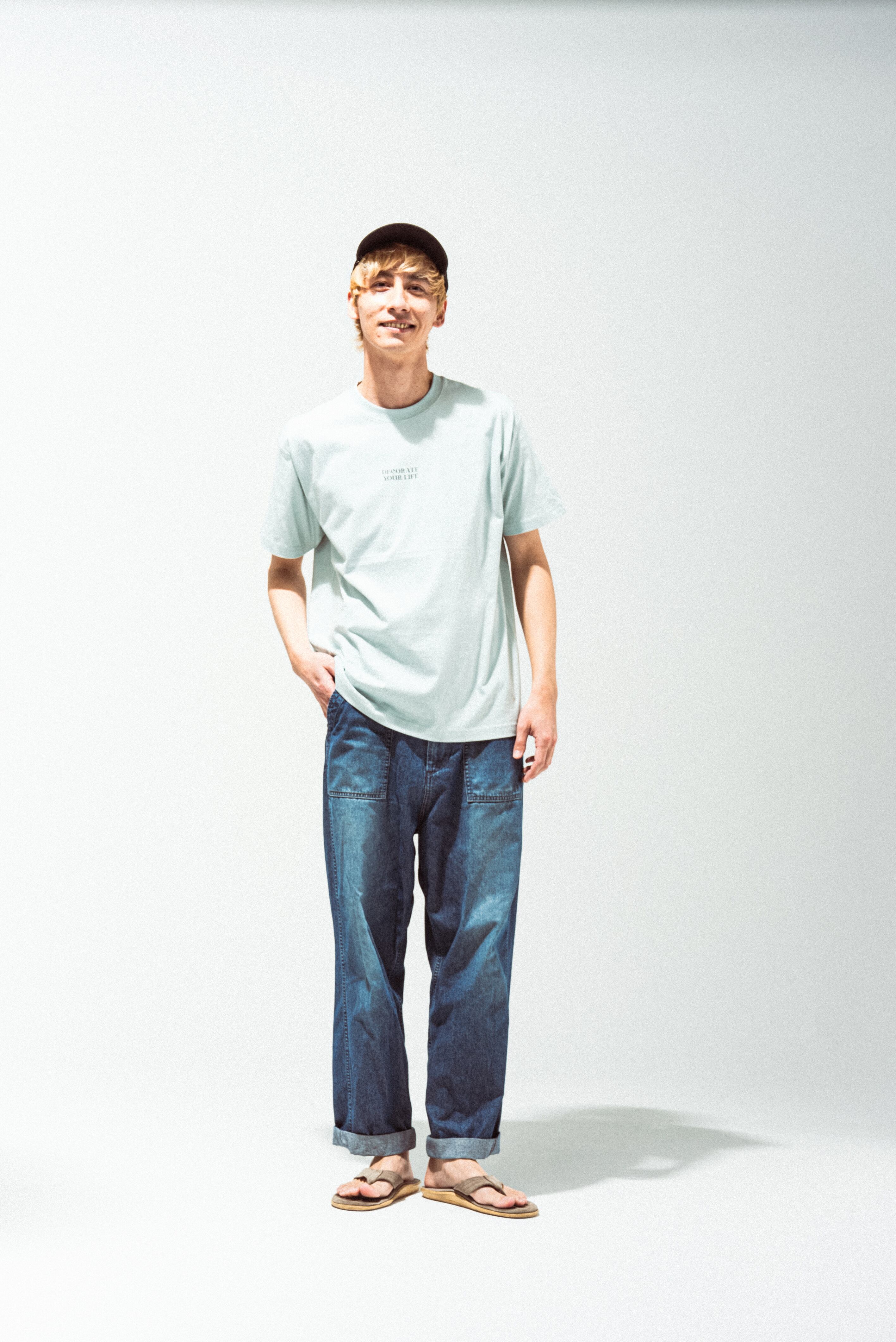 生地の風合いを損なわないようガーメントプリントを採用し、生地に直接インクを吹きかけて着色しています。プリント面がとてもスムーズで馴染んでいるので着ていてとても気持ち良いです。