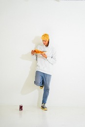 カンガルーポケットのワンポイントタグがさり気ないアクセントを演出。